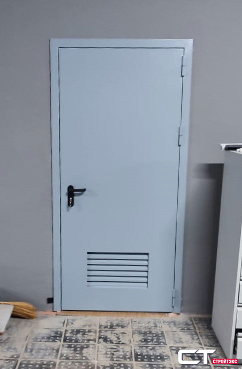 Если глухая металлическая дверь кажется вам скучной, выберите дверь с остеклением, вентиляционной решеткой или фрамугой.